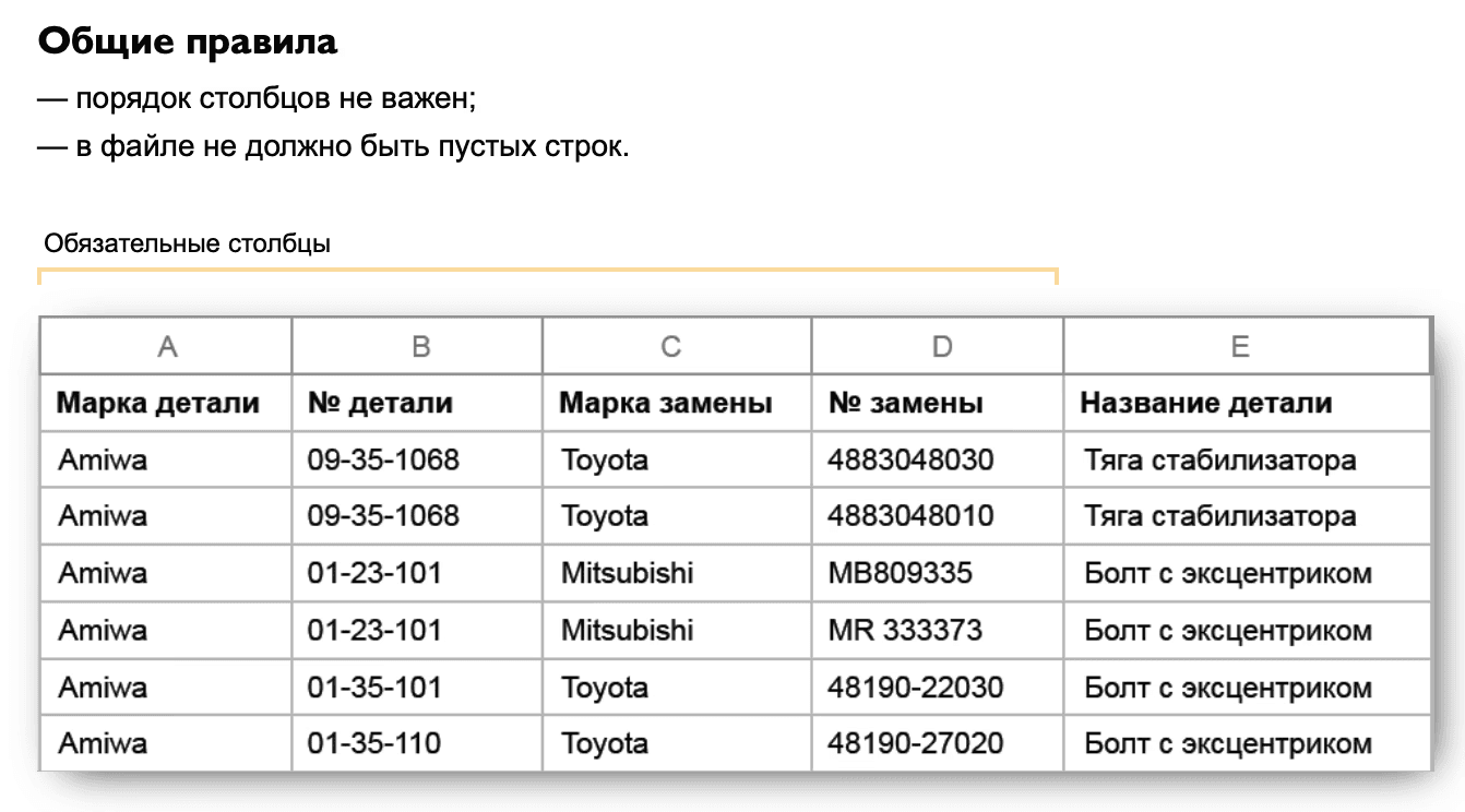 Загрузите файл с предложением и выполните сопоставление колонок.